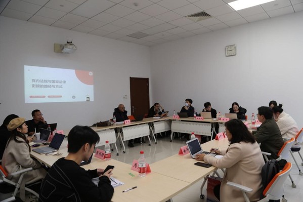 江苏省法学会党内法规研究中心副主任、无码直播 (纪检监察学院)蔡金荣教授汇报了研究中心筹备情况及中心章程。