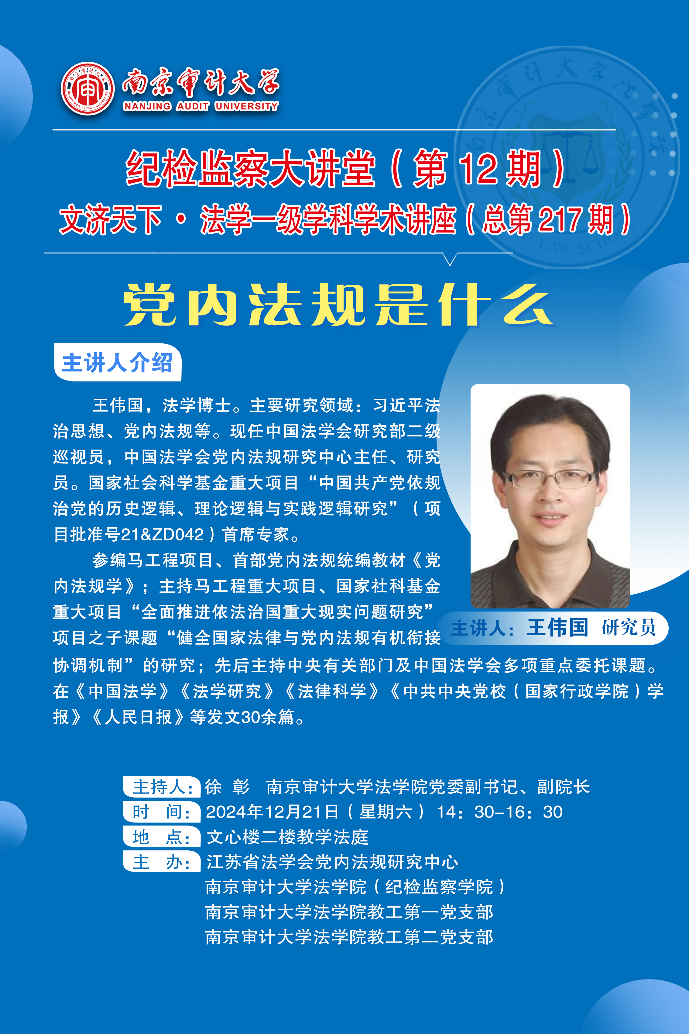 纪检监察大讲堂(第12期)文济天下•法学一级学科学术讲座(总第217期)